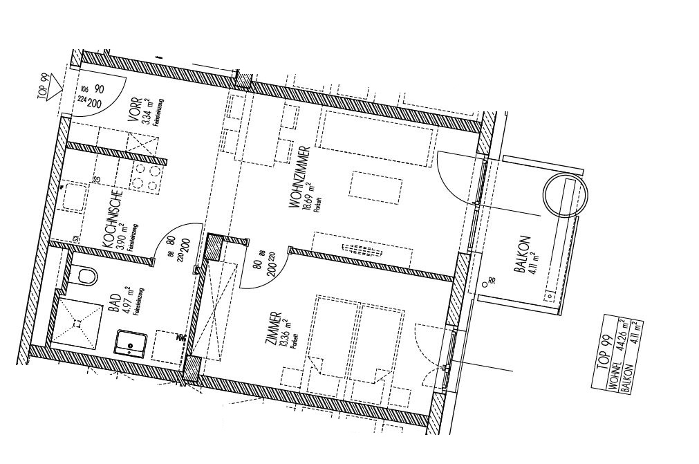 Die Neubau Wohnung Top 99 liegt im 6. Obergeschoss und ist bequem per Lift erreichbar. Sie verfügt über ein ca. 18 m2 großes Wohn-Esszimmer, eine räumlich abgetrennte Kochnische inkl. voll eingerichteter Küchenzeile (mit AEG Küchengeräten), ein Zimmer, ein Bad mit Walk-In Dusche, Sprossenheizkörper, Waschmaschinenanschluss und WC und einen Vorraum. Zur Wohnung gehört ein ca. 4 m2 großer südlicher Balkon der vom Wohn-Esszimmer aus begehbar ist.