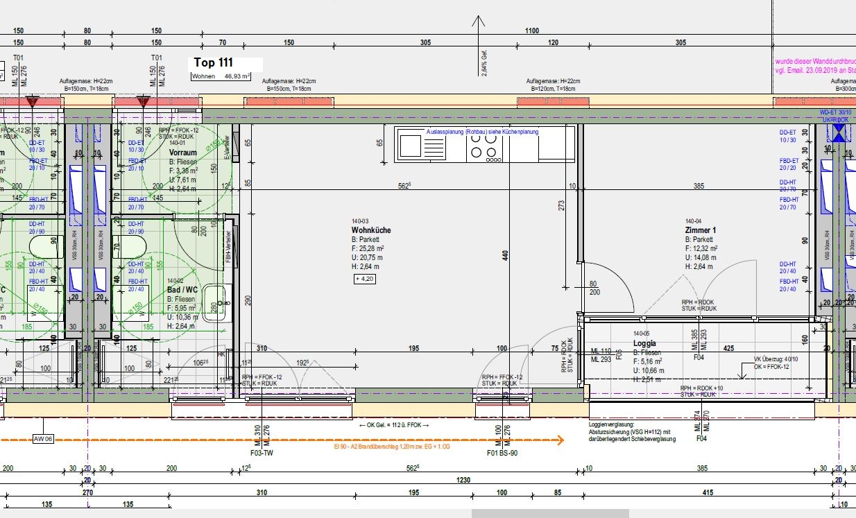Die Neubau-Wohnung Top 111 liegt im 1. Obergeschoss und ist bequem per Lift erreichbar. Raumaufteilung: Ein ca. 25 m² großes, helles Wohn-Esszimmer mit voll eingerichteter Küchenzeile (inkl. Gorenje Küchengeräten), ein Schlafzimmer, ein Bad mit Dusche und WC sowie einen Vorraum sowie eine Loggia, die den Wohnraum noch zusätzlich vergrößert.