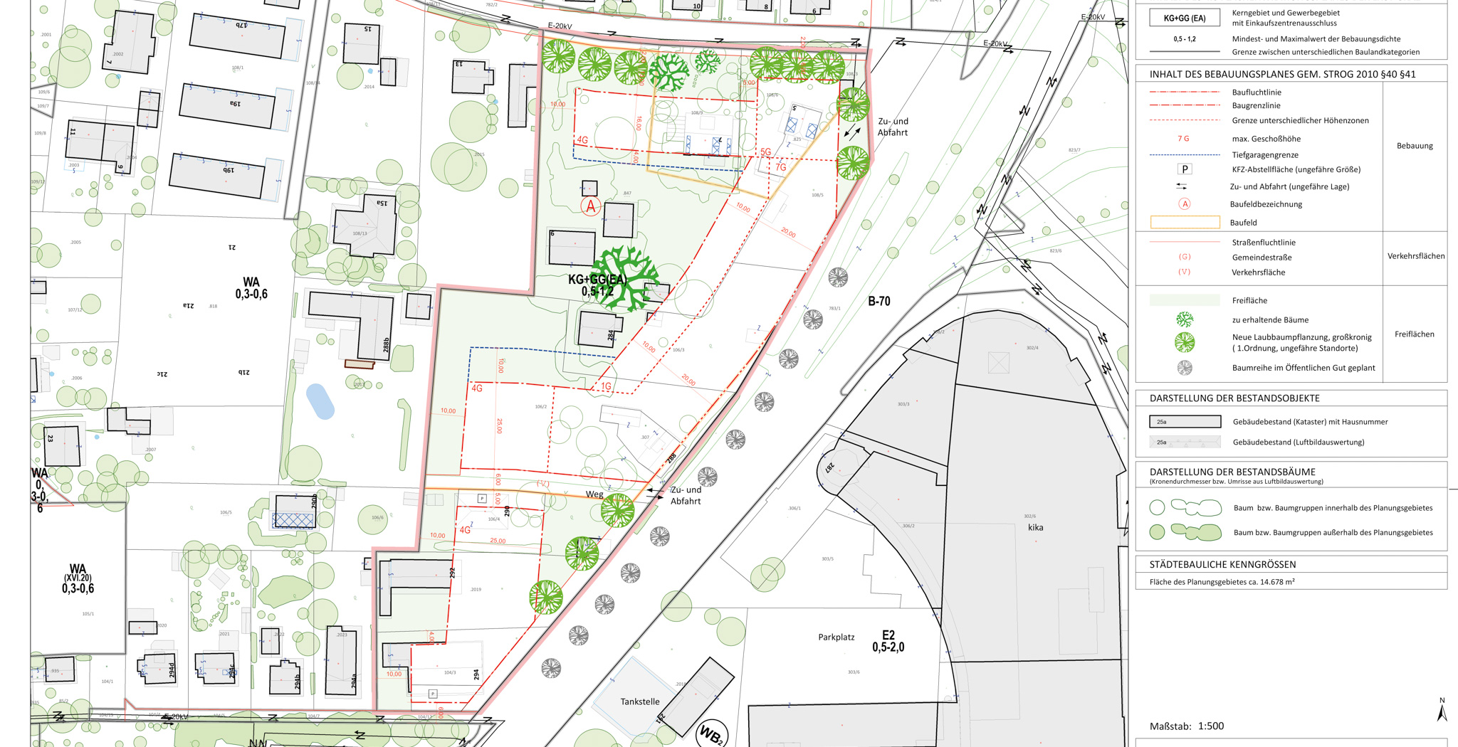 Laut Bebauungsplan ist eine geschlossene Bebauung mit einer eleganten Staffelung von 7 auf 4 Geschoße vorgesehen – ein architektonisches Statement mit urbaner Qualität.