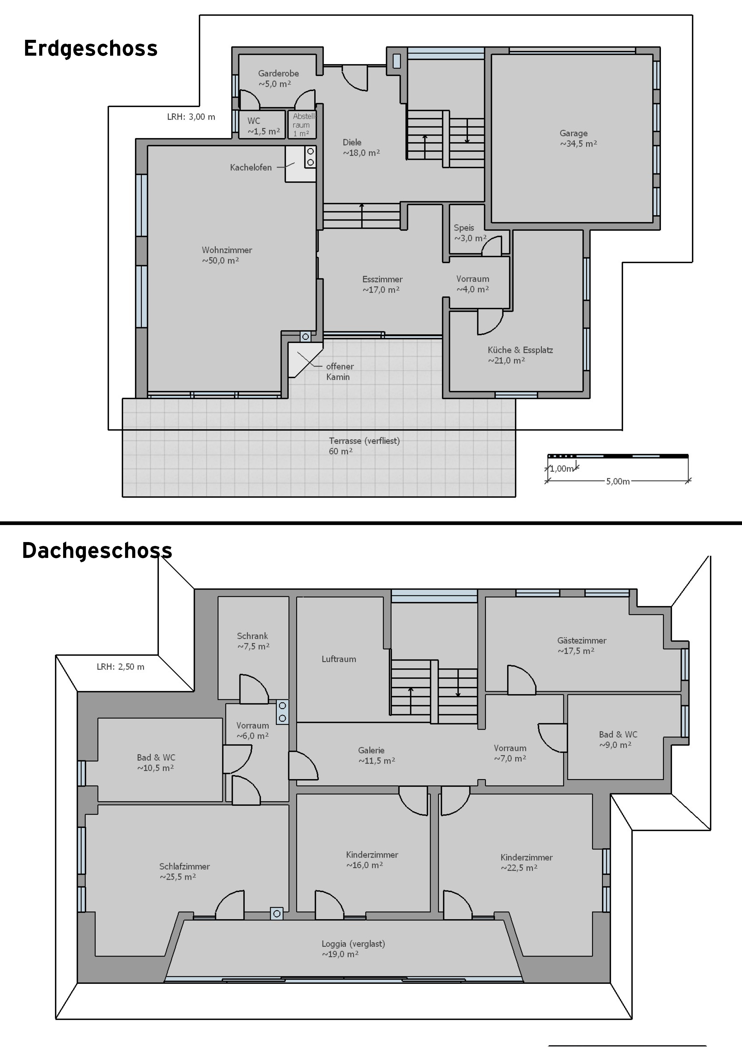 • Keller: ca. 144 m² inkl. Sauna und Hobbyraum