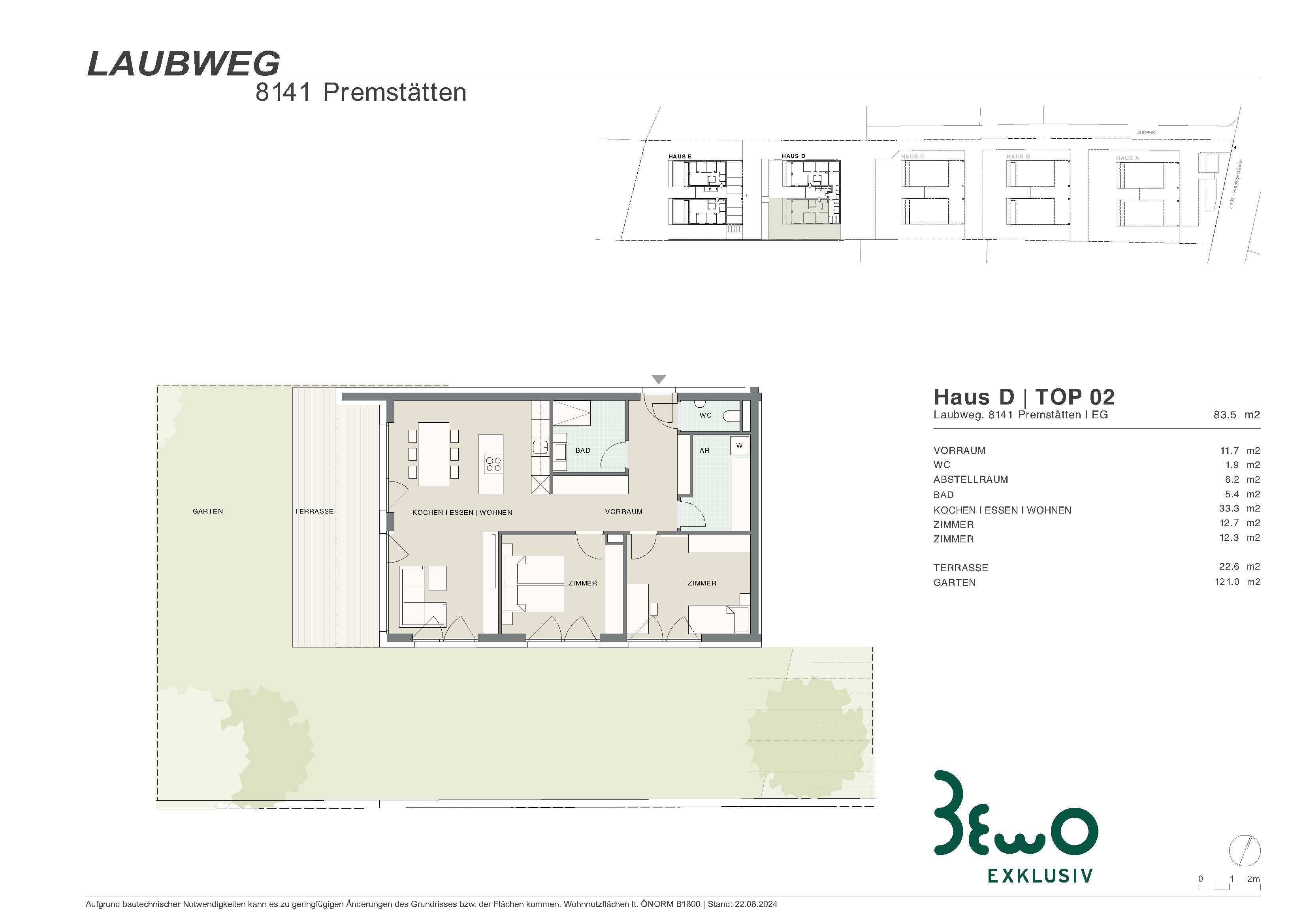 | Top Haus D Top 02 | Erdgeschoß | ca. 83,50 m2 | 3 | ca. 22,60 m2 | ca. 121,00 m 2 | Anzeigen | - | |