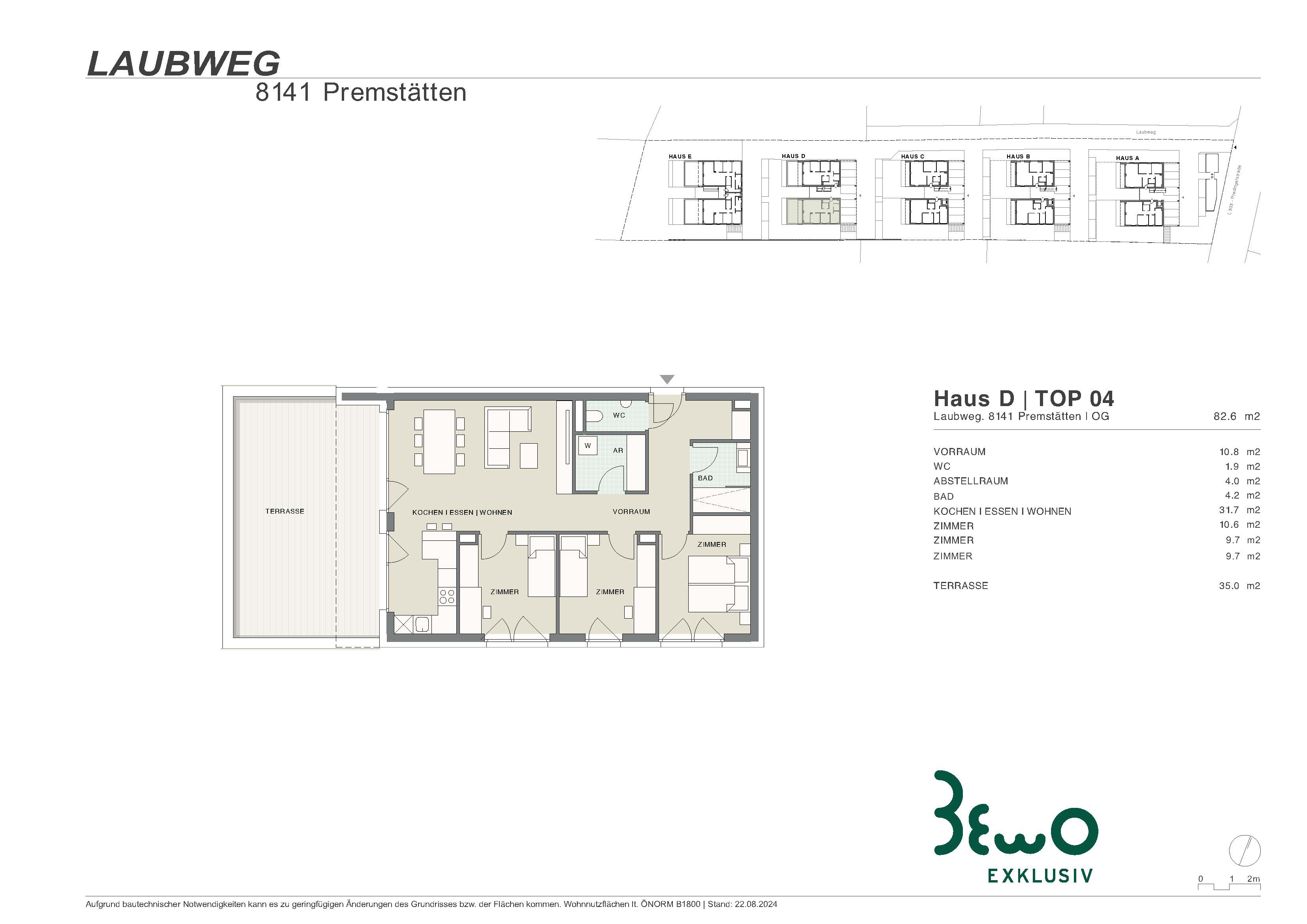 | Top Haus D Top 03 | 1. Stock | ca. 82,20 m2 | 4 | ca. 35,00 m2 | Anzeigen | - | ||