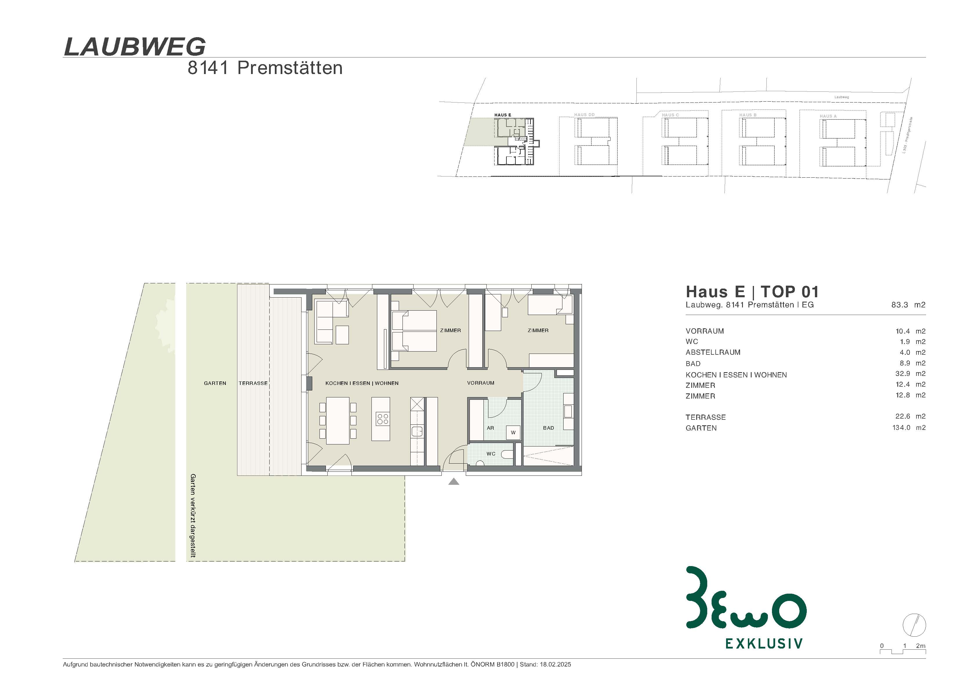 | Top Haus E Top 01 | Erdgeschoß | ca. 83,30 m2 | 3 | ca. 22,60 m2 | ca. 134,00 m 2 | Anzeigen | - | |