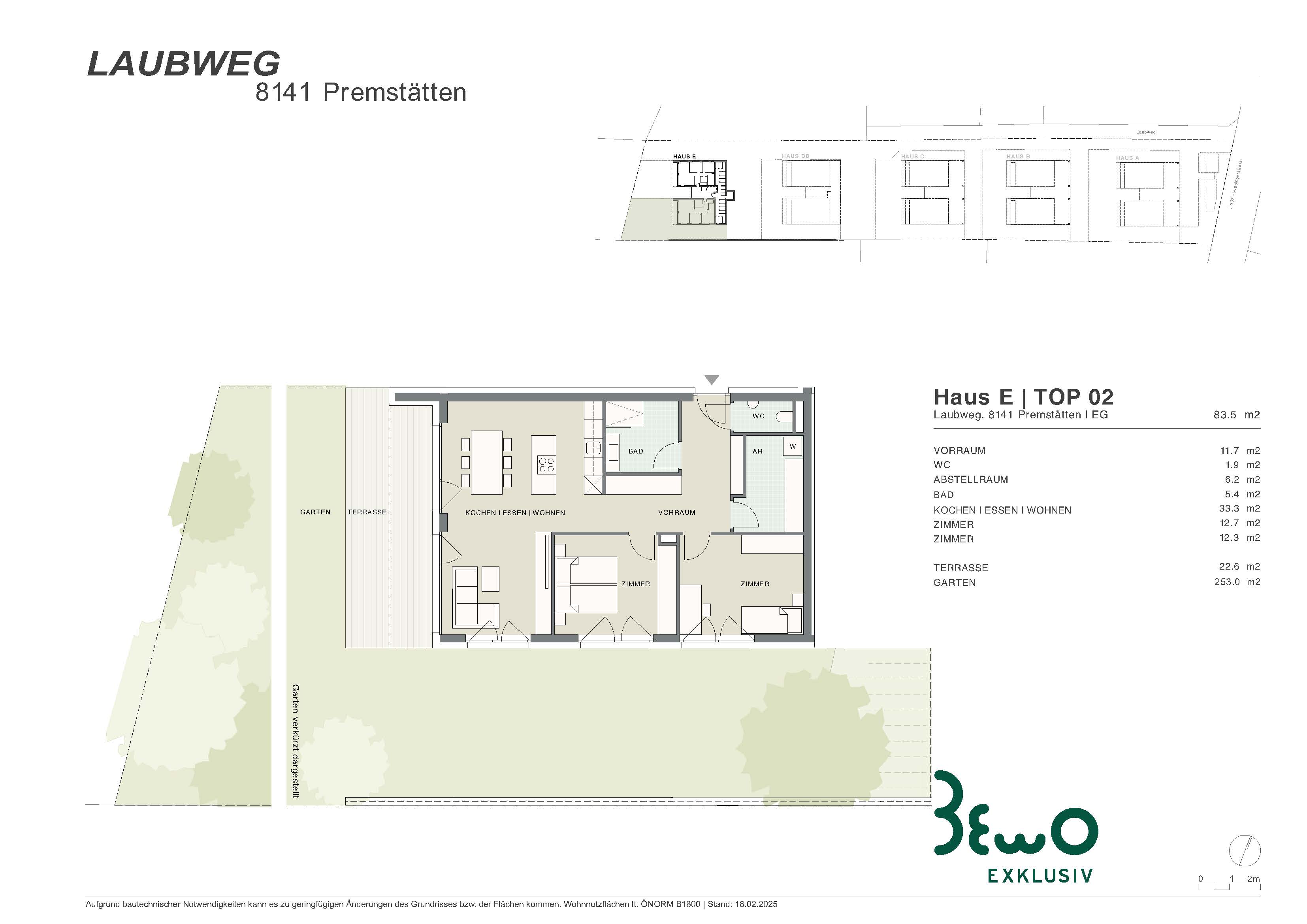 | Top Haus E Top 02 | Erdgeschoß | ca. 83,30 m2 | 3 | ca. 22,60 m2 | ca. 253,00 m 2 | Anzeigen | - | |