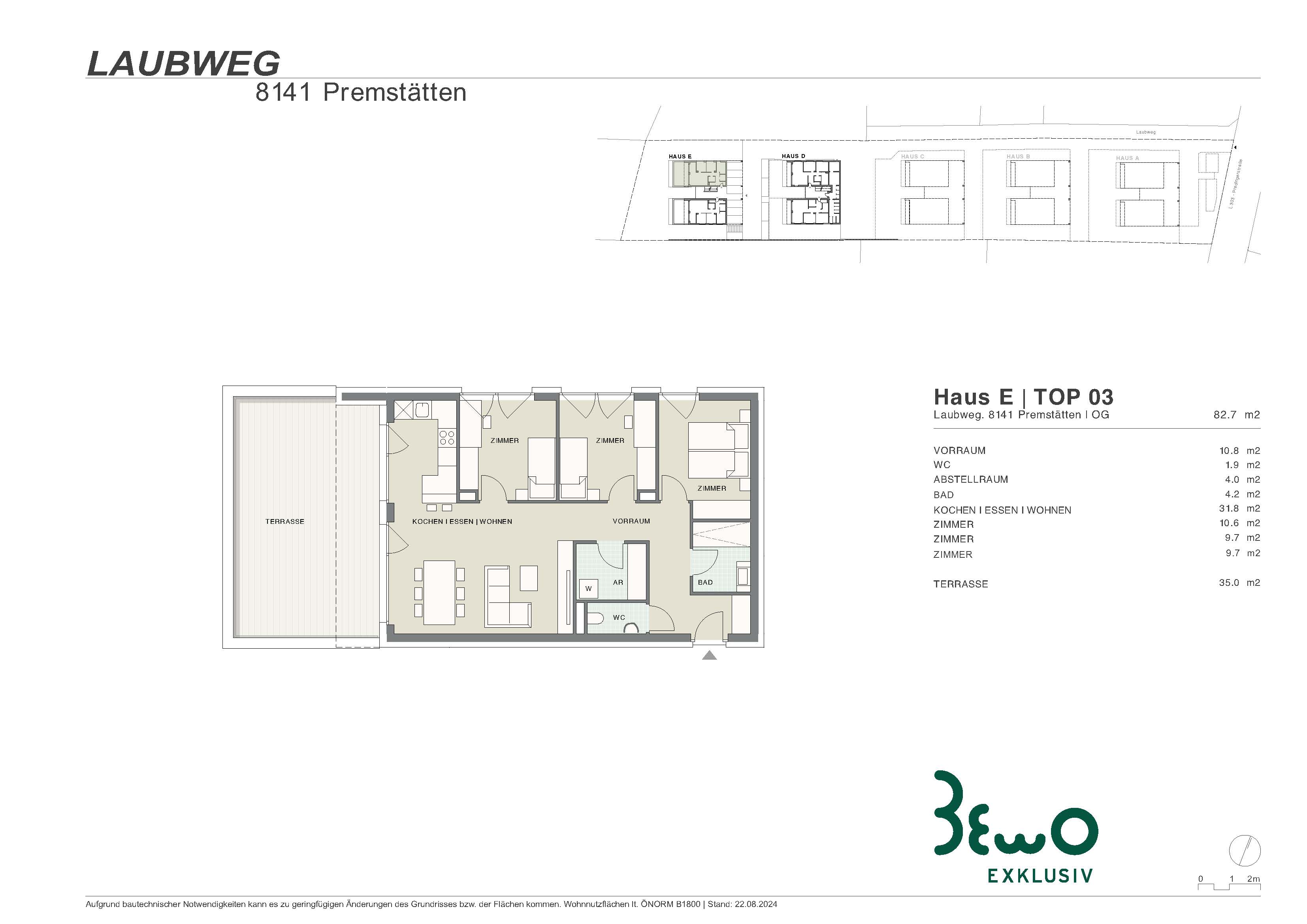 | Top Haus E Top 03 | 1. Stock | ca. 82,70 m2 | 4 | ca. 35,00 m2 | Anzeigen | - | ||