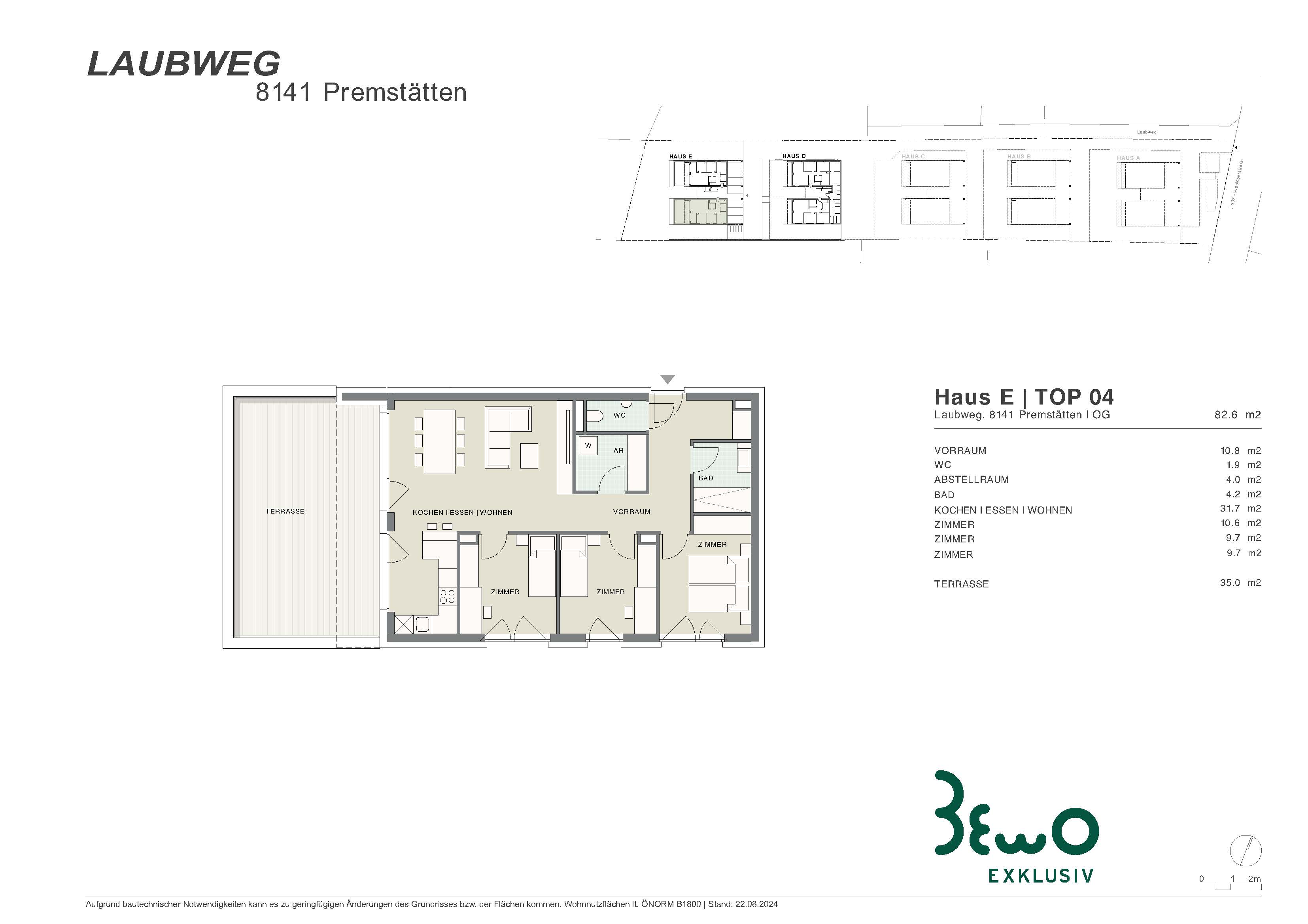 | Top Haus E Top 04 | 1. Stock | ca. 82,60 m2 | 4 | ca. 35,00 m2 | Anzeigen | - | ||